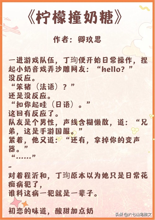 这是一本双向暗恋小甜文,高甜无虐,初恋感特别浓,暗恋的小感觉也写得很好,不过文笔一般,文荒可入。