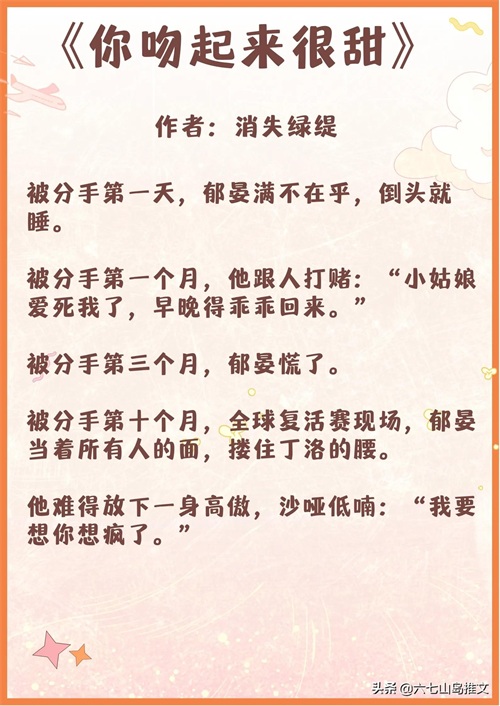这是一本破镜重圆电竞文,男女主一开始就是男女朋友,男主是电竞选手,因为比赛太忙总是没有时间陪伴女主,后面就分手了,最开始男主并不觉得有什么,时间久了之后男主就开始非常想女主。