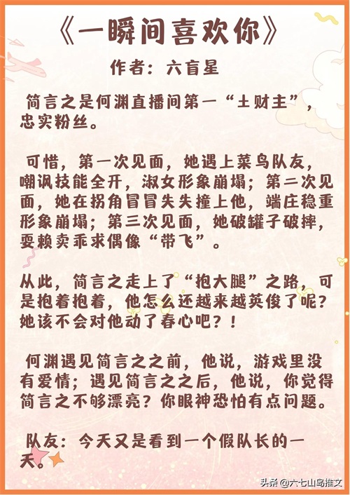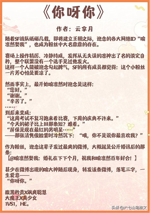 男主是电竞选手,女主是男主的粉丝,还是大粉,女主性格飒爽有聪慧,做事有条有紊。