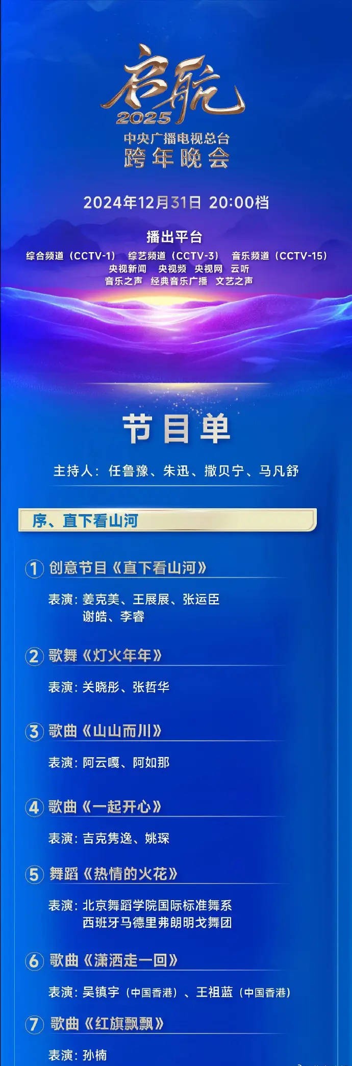 各大卫视跨年晚会节目单释出 杨幂杨紫王一博喜迎2025
