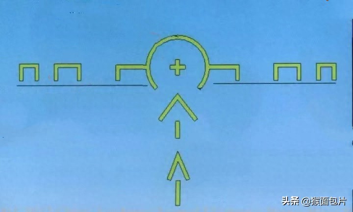 1、先说瞄准,100米和200米距离内,可以直接用圆环中间的+对准目标就行,300米的距离用下面第一个倒V准星压住目标就行,400米距离用下面第一个竖线的上端点对准目标,下端点是500米距离的标准点,依次类推,再下面那个倒V是600米,第二个竖线上端点是700米,下端点是800米。