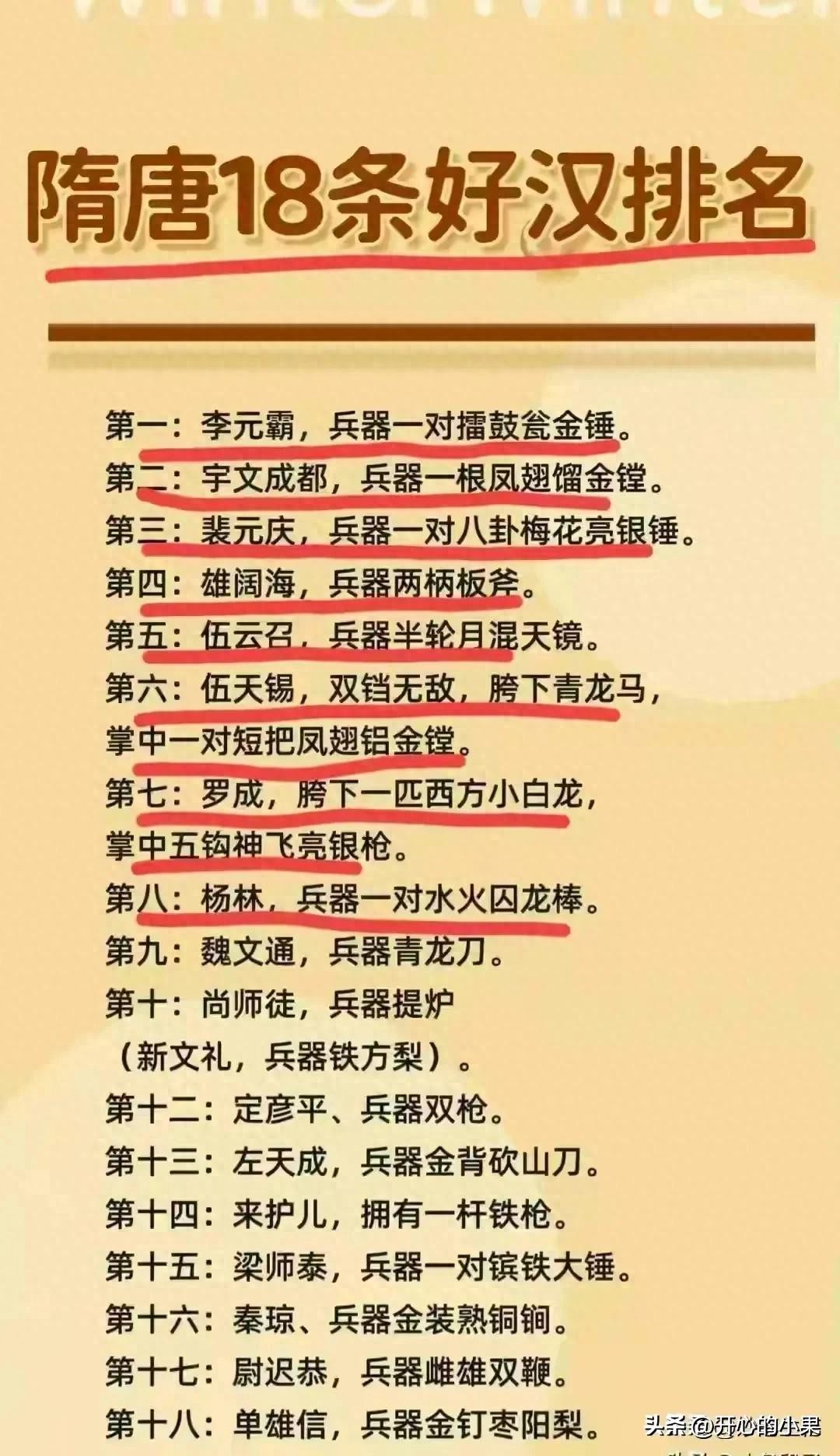 终于有人把“隋唐18条好汉排名”整理出来了,收藏起来看看。
