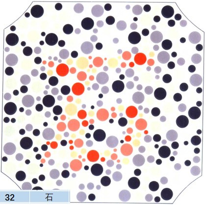 第2幅图大家看到的应该是汉字石头的石。对于这两个字应该来说难度也不是很大。不过对于红色色盲或者黄色色盲的小伙伴们来说就非常有难度了,极有可能就无法识别。