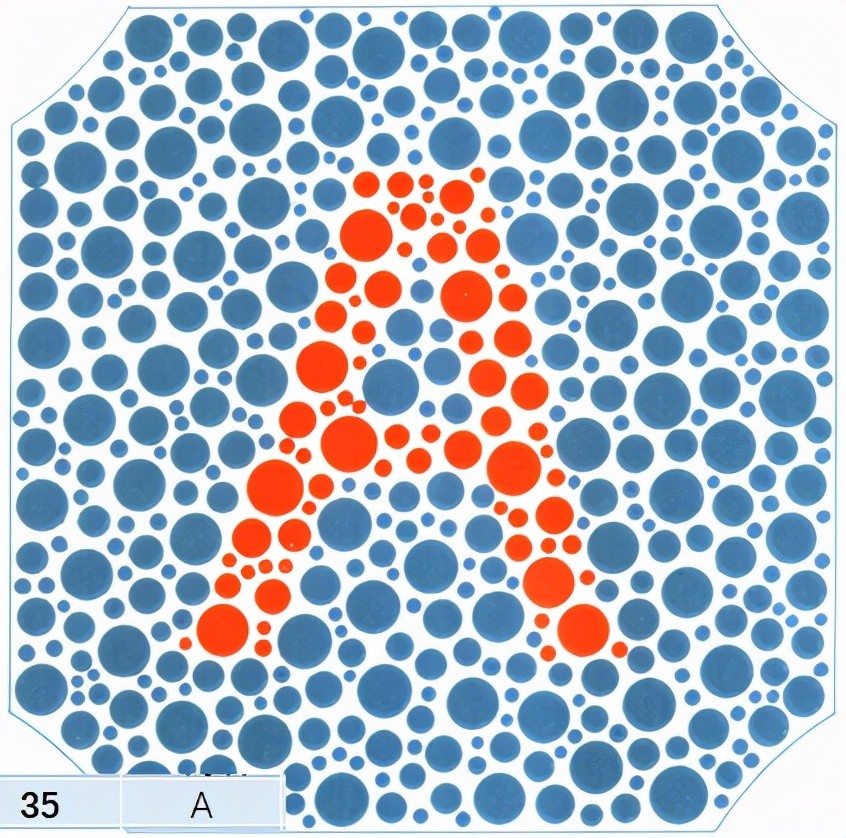 最后是一个大写的英文字母,a。如果没有办法识别出来大写的英文字母a的话,那么就是标标准准的红色色盲?甚至连红色色弱的可能性都不存在,就是这么精准。