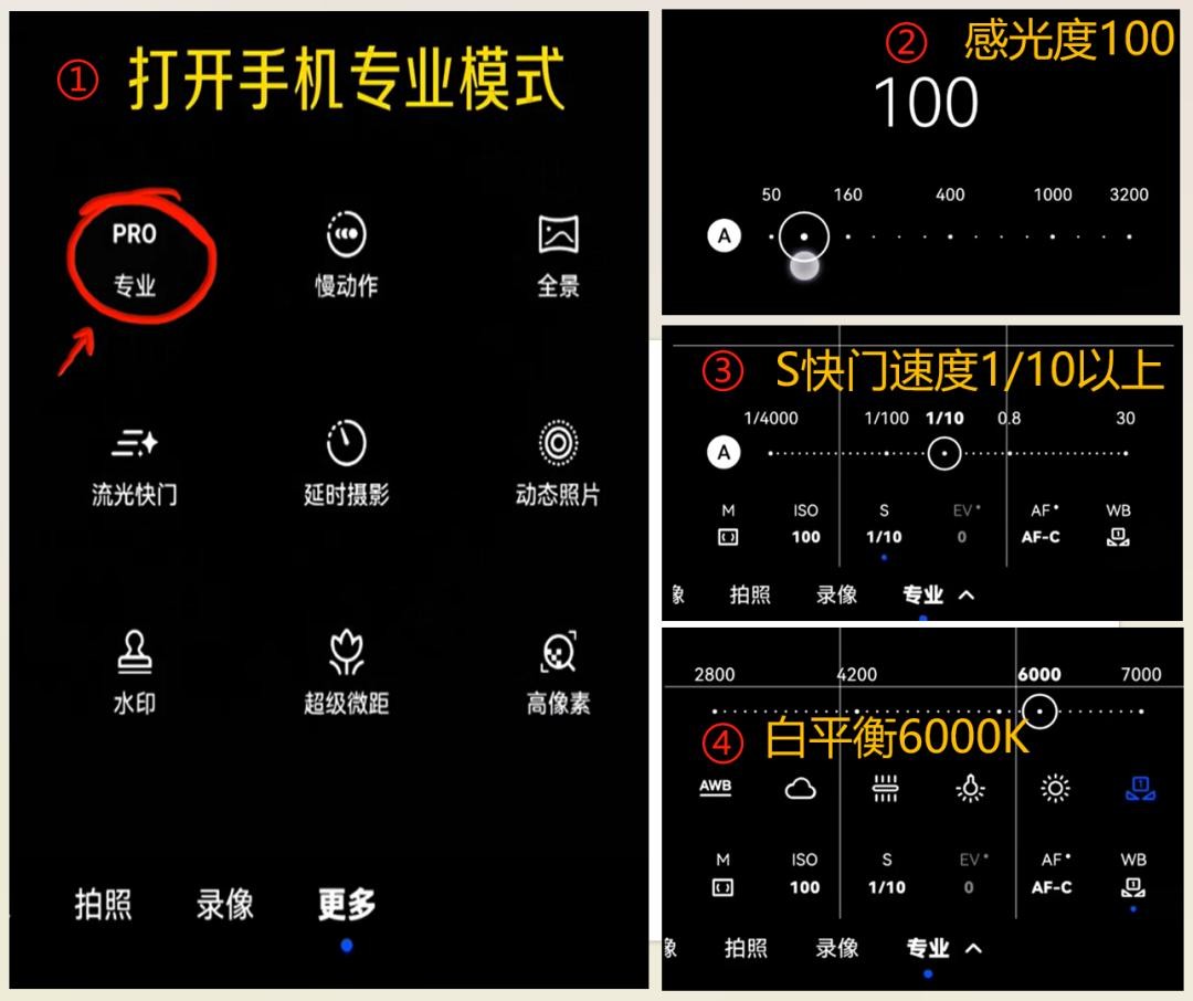 1、打开相机的专业模式,右滑找到“更多”—“专业”