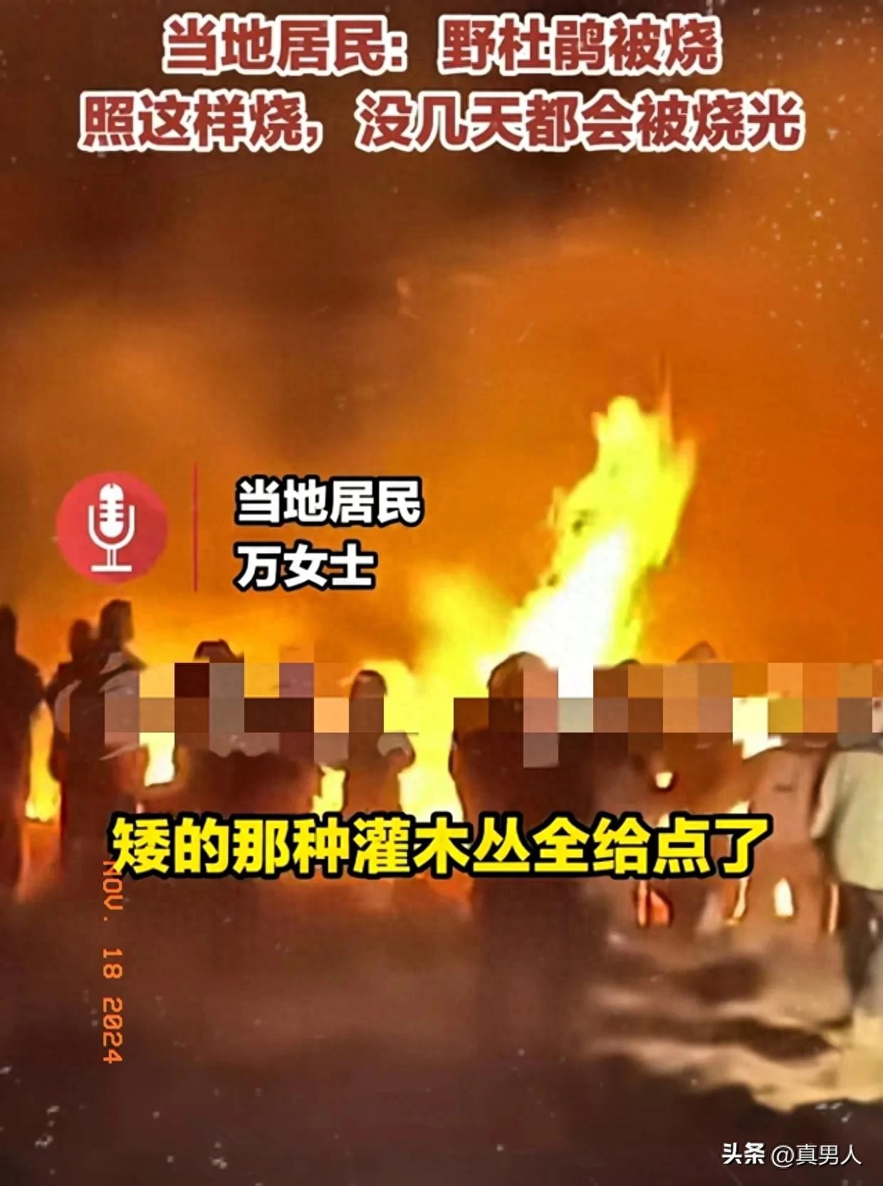 那些灌木丛,那种杜野鹃开花的时候特别漂亮,而且是满山都是,要是照这些年轻人这样烧,没几天就被他们烧光了。主要是他们还一边烧一边欢呼叶雀 ,让当地的居民表示很震惊!