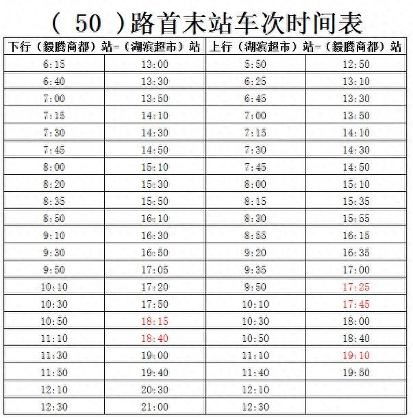2025年4月23日起,50路时间微调。具体调整如下: