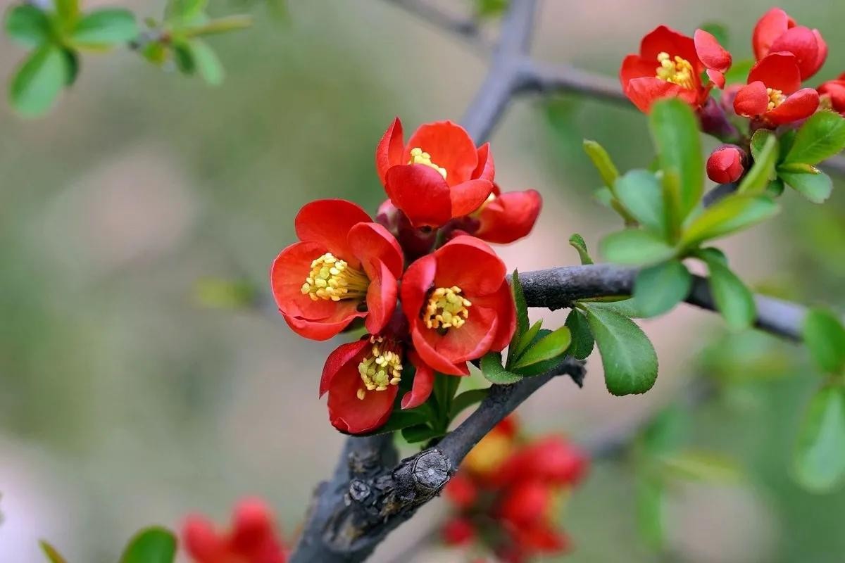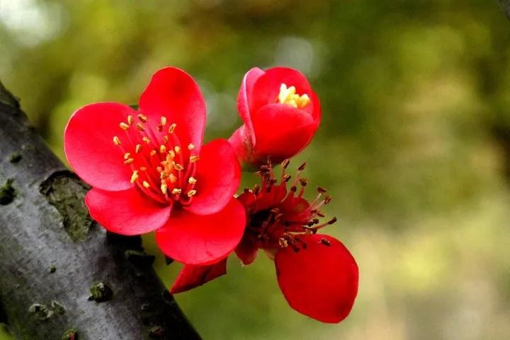 贴梗海棠,娇艳可人,古典雅致,气味芳香,重要的春季花木