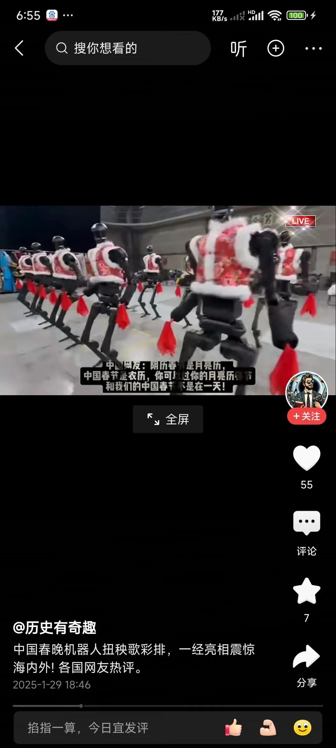 ● 感到震撼与惊叹:许多外国网友对中国机器人能在春晚如此灵活地扭秧歌表示震惊,感慨中国科技发展迅猛。例如有人将其与埃隆·马斯克的老年机器人对比,认为中国的机器人技术领先,在春晚上活蹦乱跳,而对比之下其他的机器人表现则相形见绌。