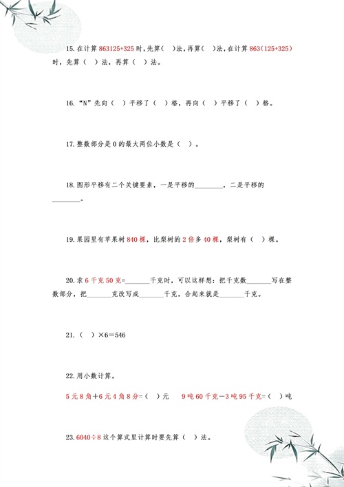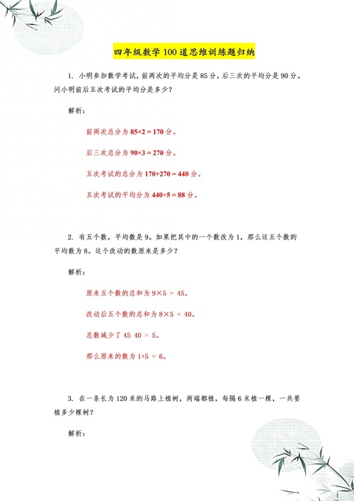 四年级数学:100道思维训练题,5大专题含答案,想考98分的打印