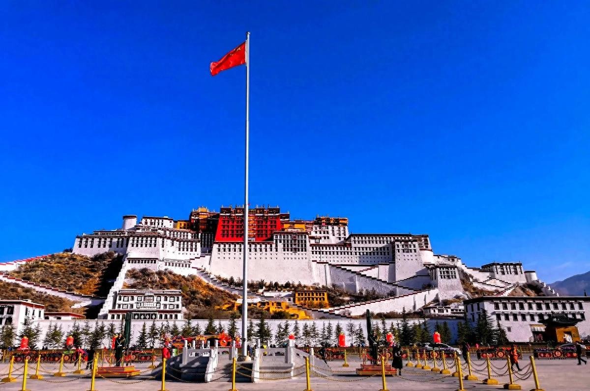 布达拉宫'1正面的、国旗已被升上的布达拉宫