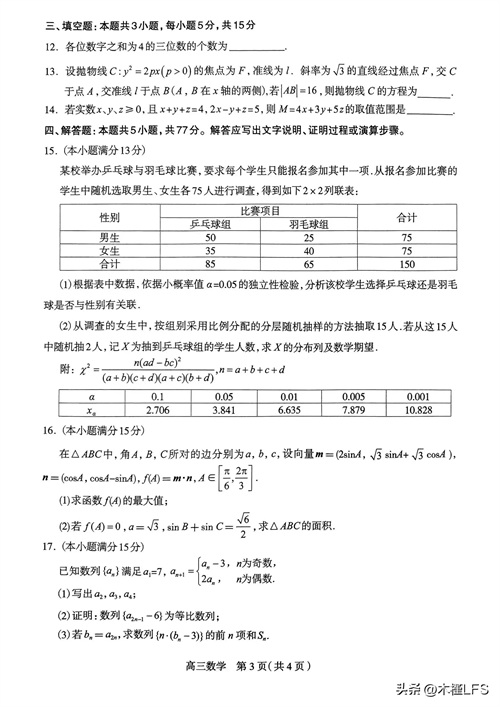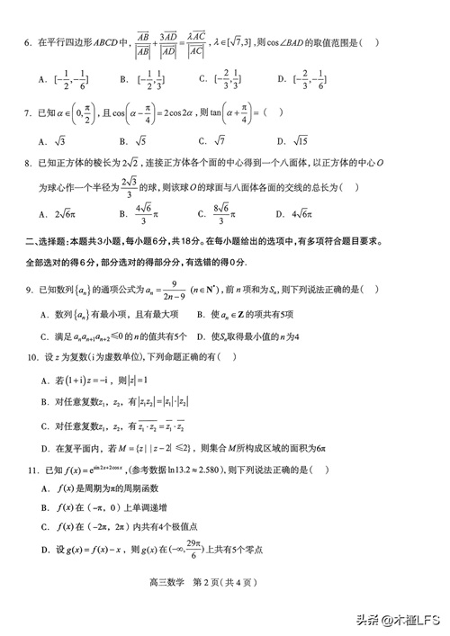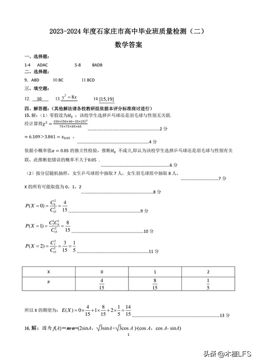 2024年石家庄市高三质检(二)(二模)数学试题及答案