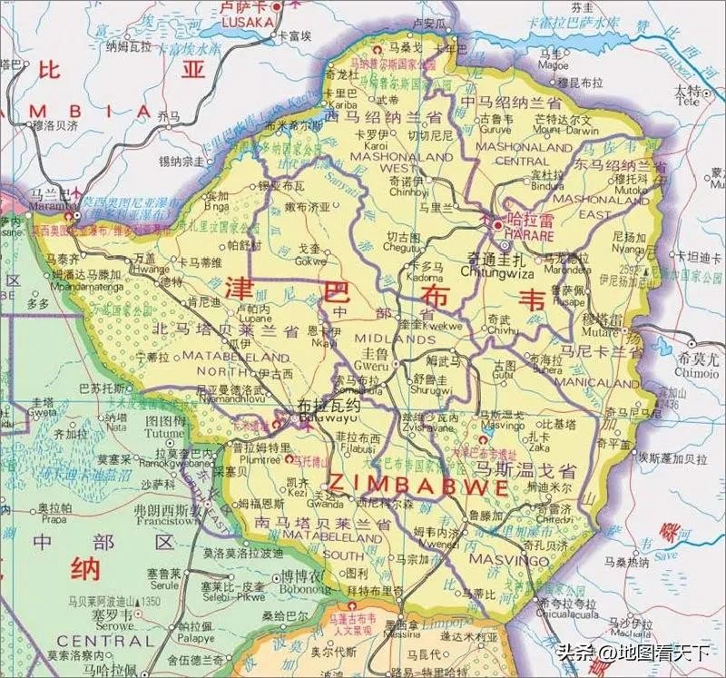 境内河流众多,水网密集。赞比西河与林波波河为津巴布韦同赞比亚及南非的界河。