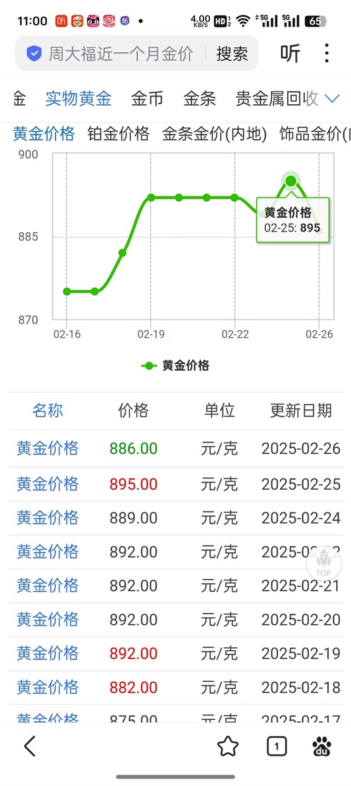 2月25日,国际金价显著下跌,跌幅达1.5%。国内现货黄金价格微跌到680元每克,距离国内近期金价高点689.92元每克,一克下跌了10元左右。