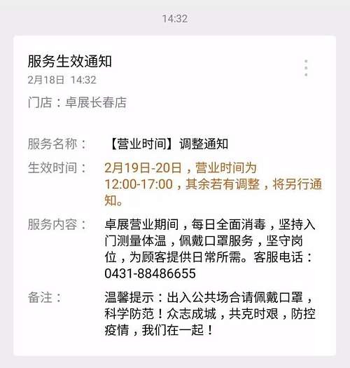 长春卓展营业时间调整通知