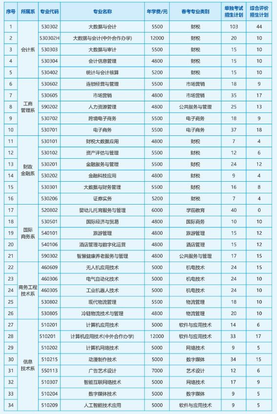山东经贸职业学院高职单招720人 综合评价招生360人