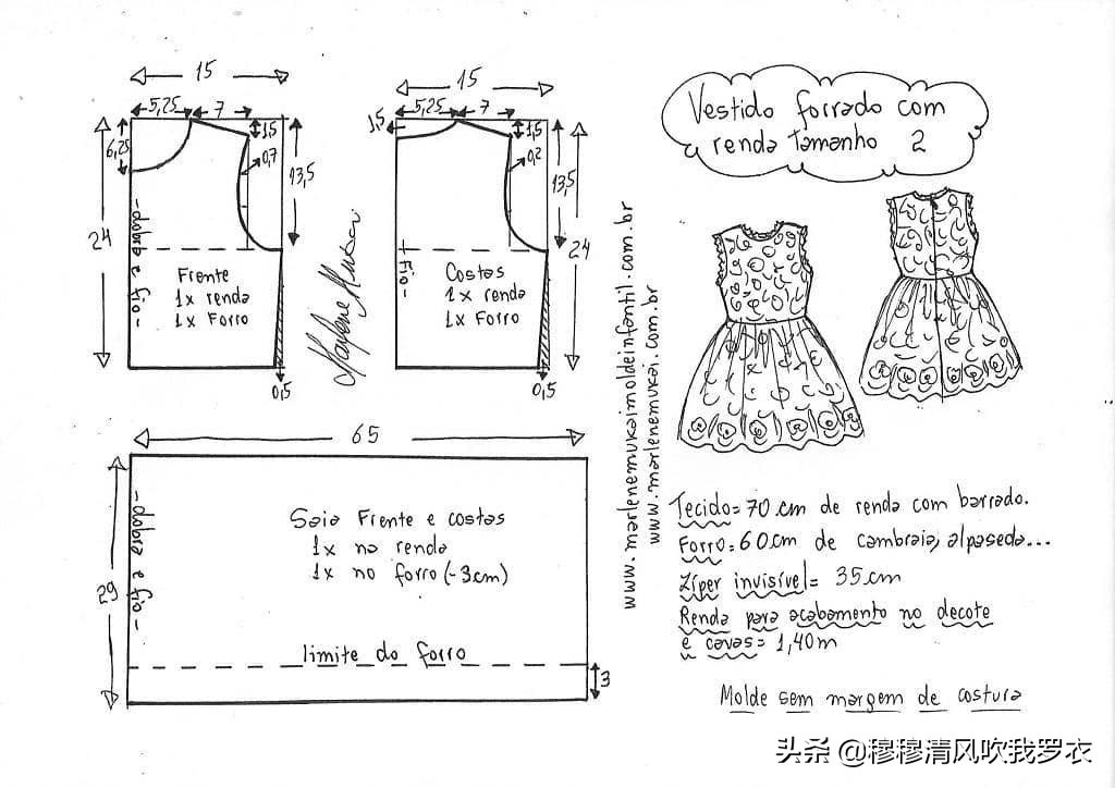 制图非常简单的连衣裙,试着给家里的女宝做一条吧!
