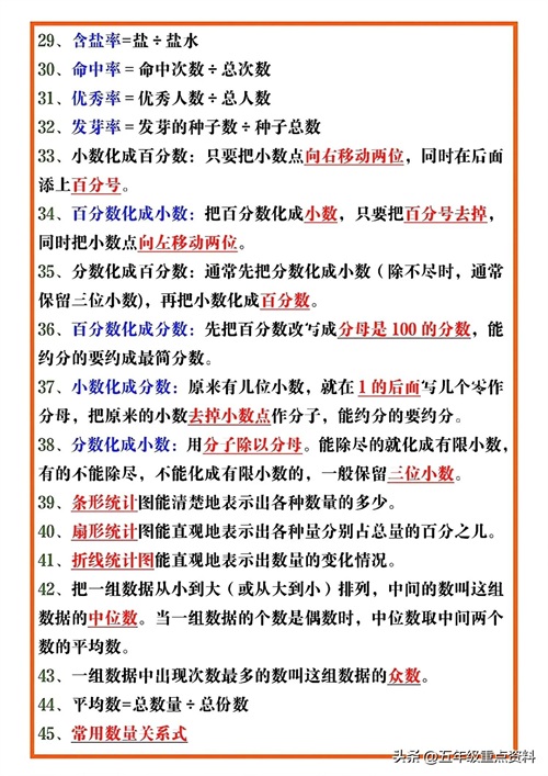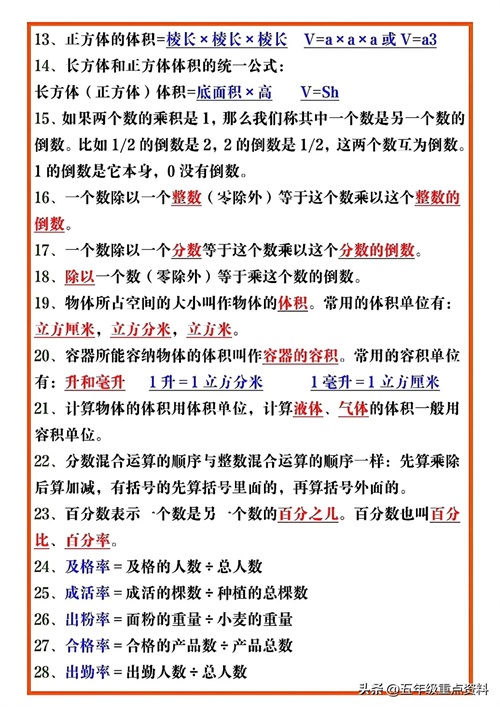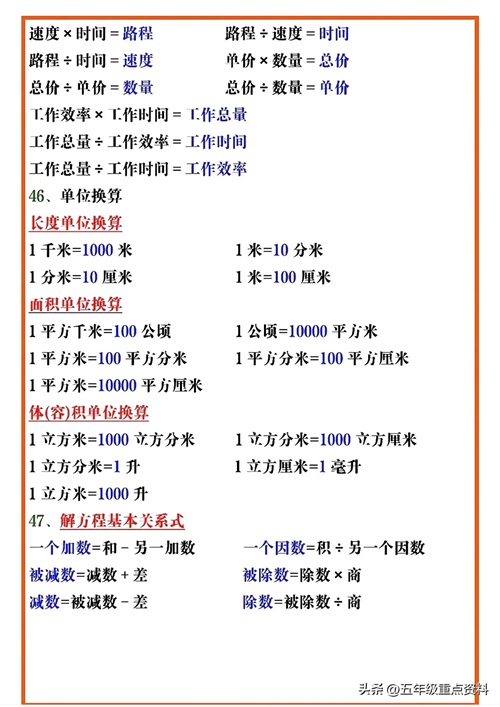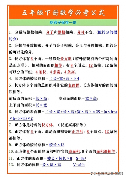 五年级下册数学必考公式汇总,给孩子打印一份吧