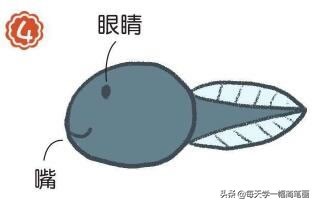 第四步:最后画出蝌蚪的嘴巴和眼睛;给蝌蚪添上颜色,画好啦!