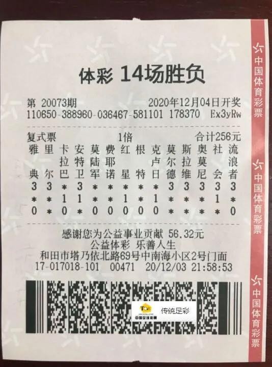 12月4日,在足彩14场游戏第20073期中,来自新疆和田购彩者阿先生喜中惟一头奖500万。