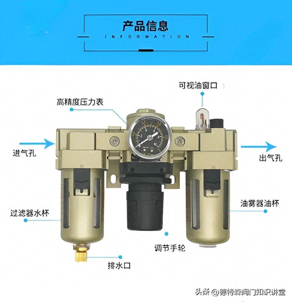 减压阀是一种调节气动系统中压力的元件,它能够将高压气体通过调节流的截面积,降低其压力并稳定输出压力。