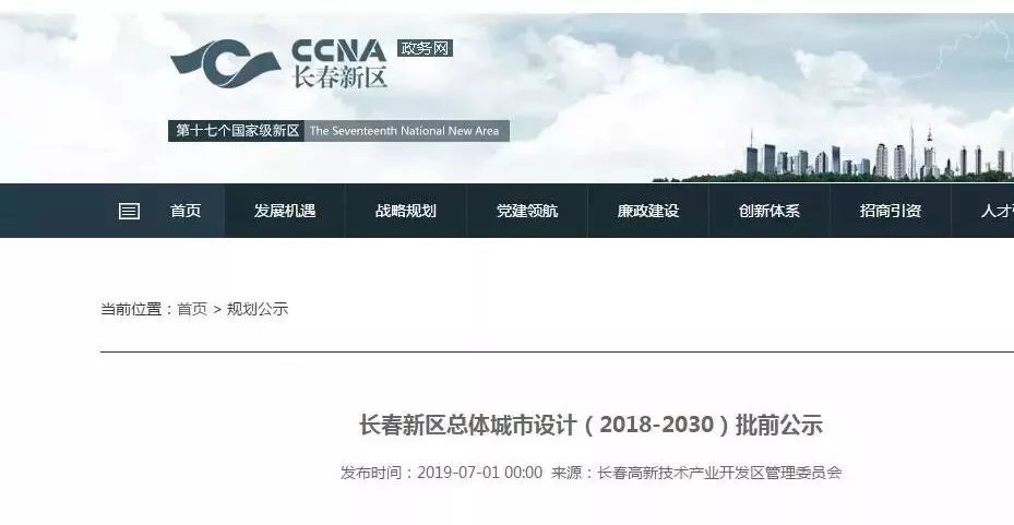 长春新区总体城市设计公示出炉