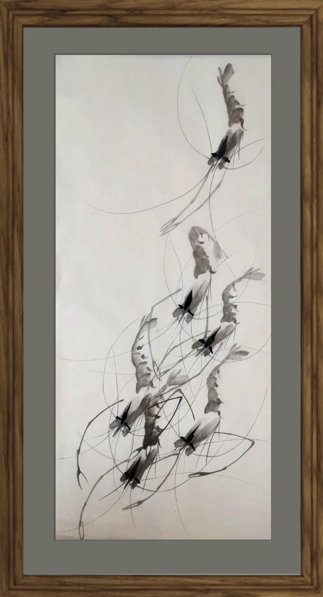 画齐白石的虾,笔法有两个特点:虾头、虾身、虾尾用扁笔,鸭嘴状,其他部位正常用笔,但需要很好的画线条,准确的说是书法功力。