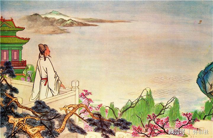 诗的意思是:老朋友要离开黄鹤楼,在繁花盛开柳丝飘飞的三月,扬帆起航直下扬州,诗人目送友人,直到帆的影子逐渐消失在蓝天的尽头时,才看到眼前的一江春水正浩浩荡荡的流向远方天水相接的地方。