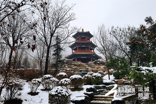 1月25日,运城天逸公园雪景如画。