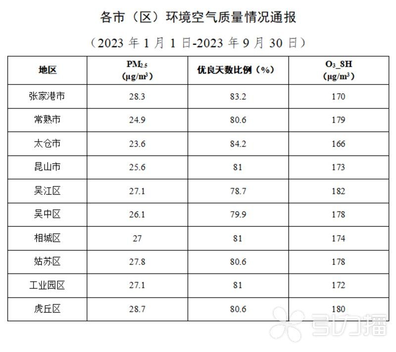 苏州通报9月全市大气环境质量状况