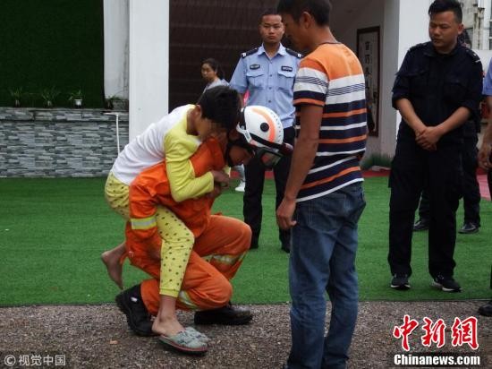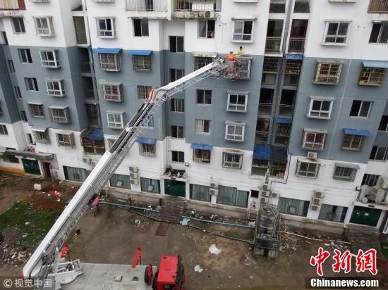 据了解,当天早上小男孩父亲叫其起床时,因小男孩懒床被训斥,小男孩赌气爬出窗外睡在了楼下的防盗网上。消防员利用登高平台消防车将小男孩救下,并交给其父亲。 图片来源:视觉中国