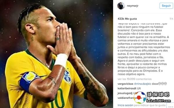 不过,当内马尔回到巴西后,他对自己的这番言论道歉。内马尔在Instagram上发布一篇长文,他写道: