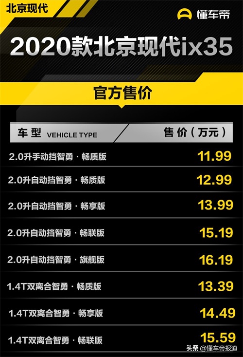新车 | 售11.99万元起 2020款北京现代ix35上市