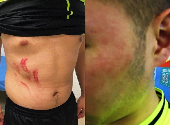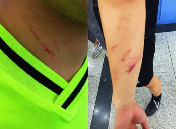 从曝光的图片来看,裁判面部、手臂、脖子、背部多处被抓伤,该网友表示,受伤裁判目前被诊断为脑震荡。