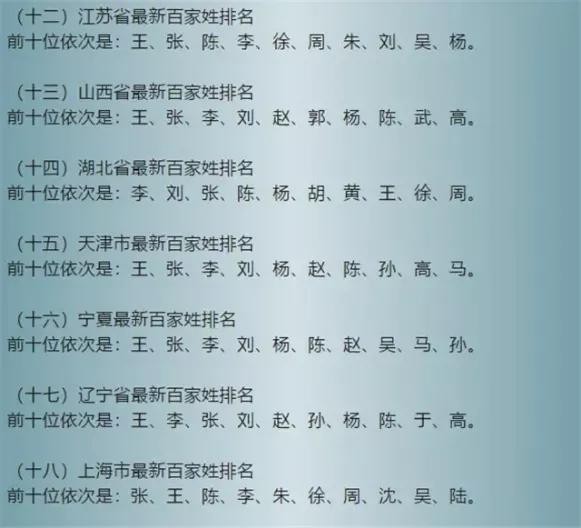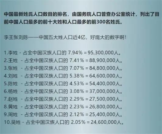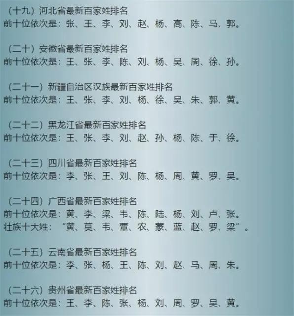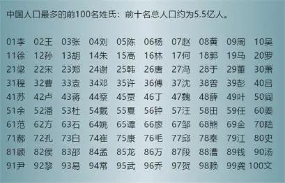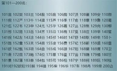 2019年中国最新百家姓排名