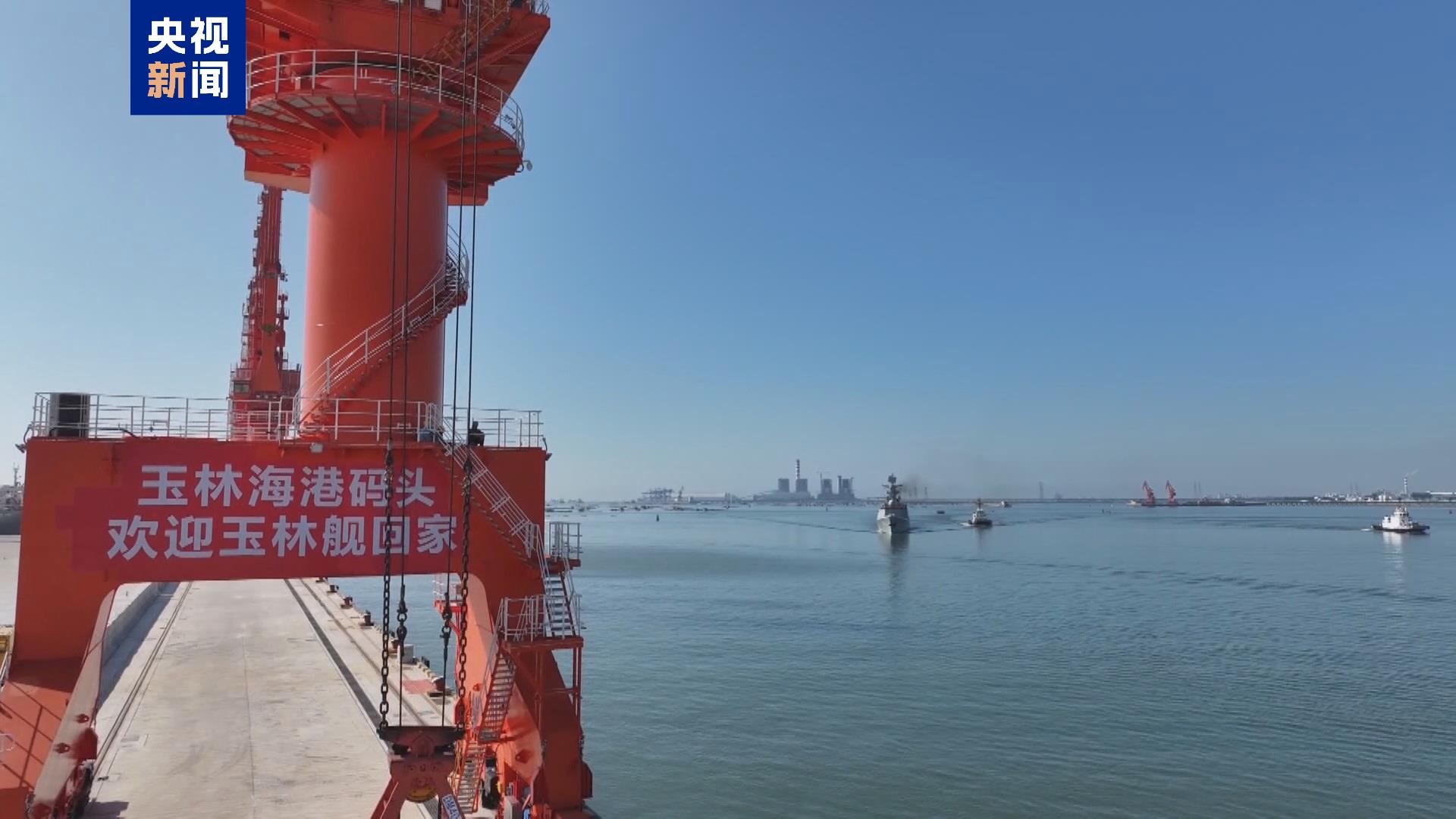 9月29日上午10时许,玉林舰停靠在玉林海港码头,官兵们身着洁白的军装在舰舷边整齐列队,以海军礼仪向家乡亲人问候致意,近600名玉林各界代表挥舞着手中的国旗热烈欢迎玉林舰首次“回家”。