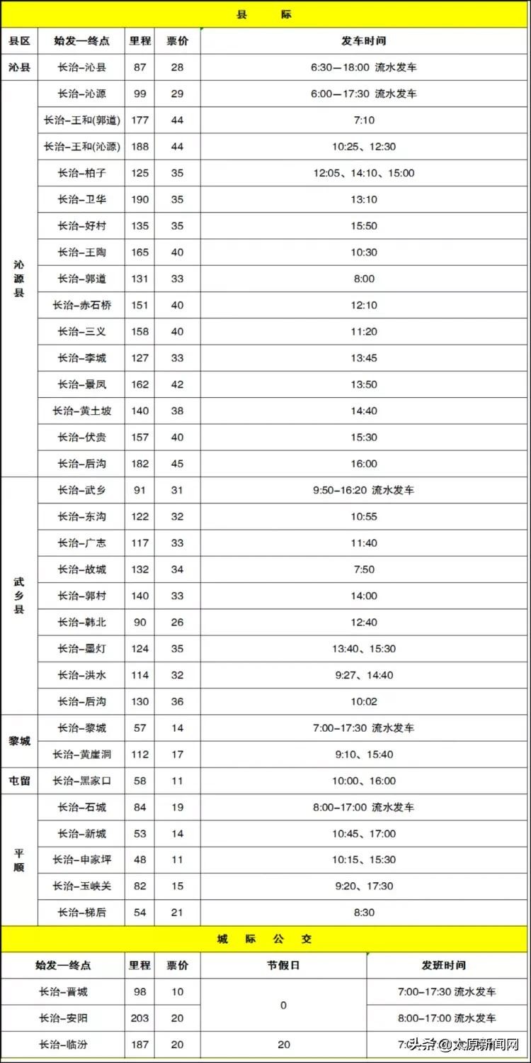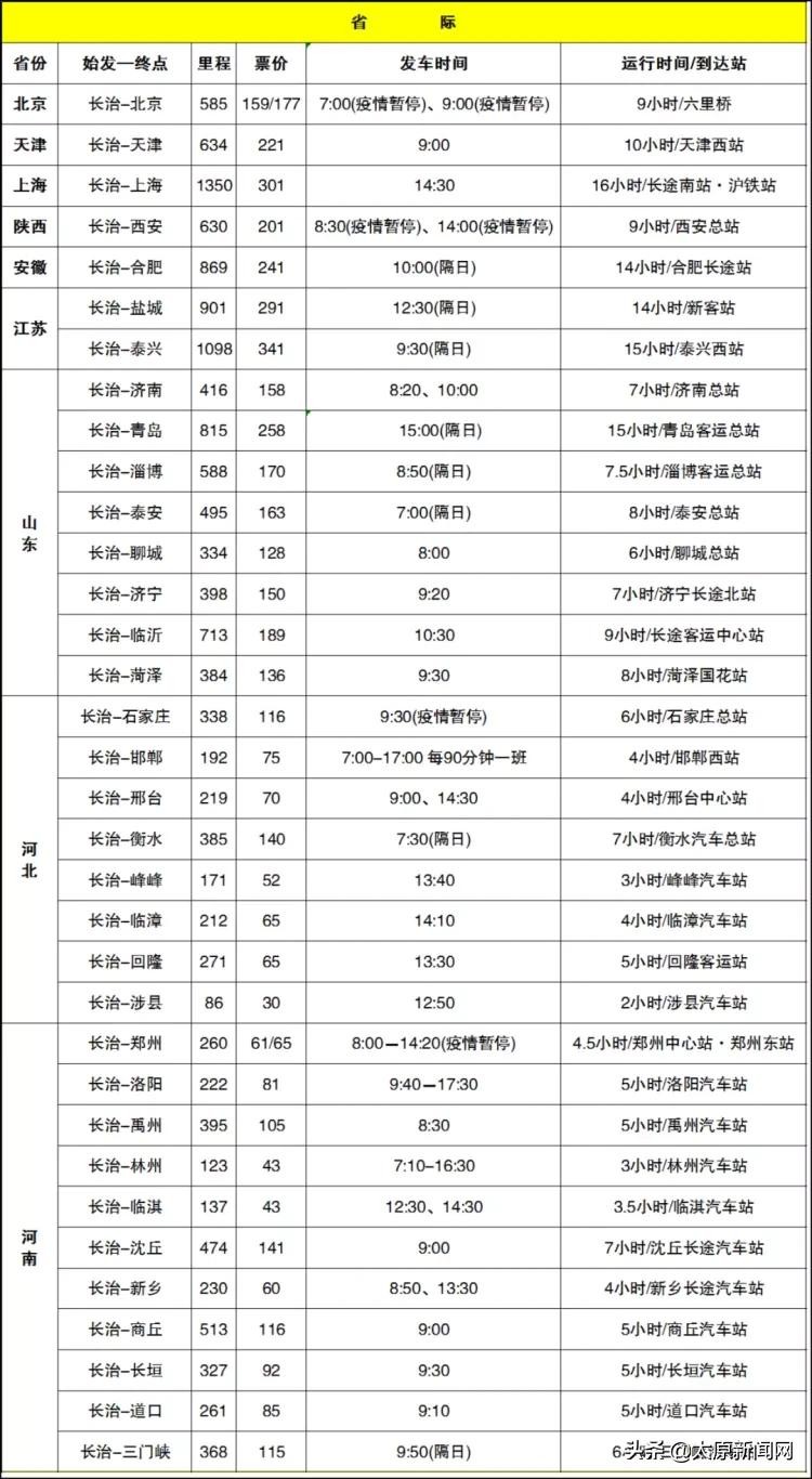 长治市客运中心发车时刻表