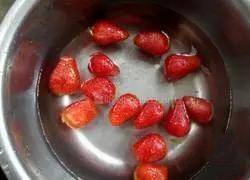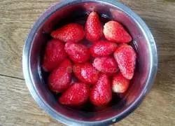 4. 将清洗干净的草莓放入糖水中,浸泡5分钟