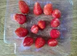 3. 捞出草莓,沥去水分,摆到容器里,放入冰箱冷冻