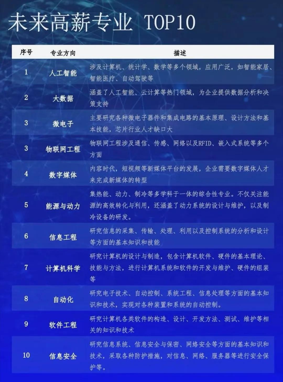 我们也不妨想想未来有哪些专业受市场欢迎,薪资较高?