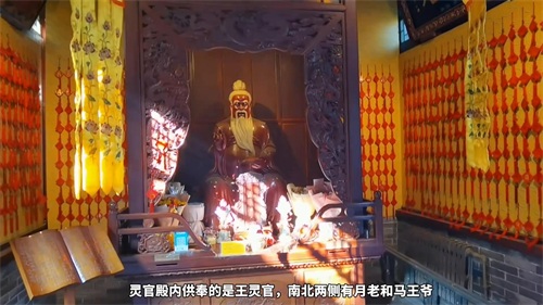 寺庙分前后两部分,前部分由广场、山门、香泉、灵官殿、财神殿组成。后部分是大殿,即湘祖殿。灵官殿内供奉的是王灵官,南北两侧有月老和马王爷。后殿与灵官殿挨得很近,抬头只能看到一线蓝天。
