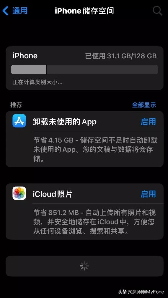 除了上述的新变化之外,还修复了一些底层bug,其中就有存储空间一直转圈圈的问题,而在iOS15.4最新版本中打开速度非常快。