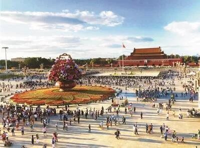 天安门广场的面积达44万平方米,南北长880米,东西宽500米。可同时容纳100万人举行盛大集会。
