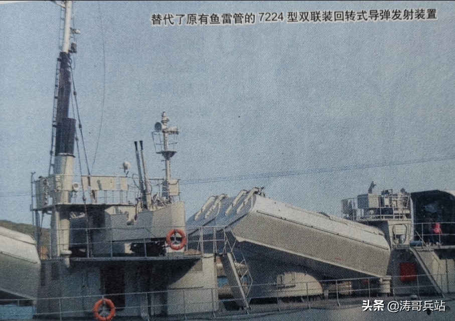 替代了原有鱼雷管的7224型双联装回转式导弹发射装置
