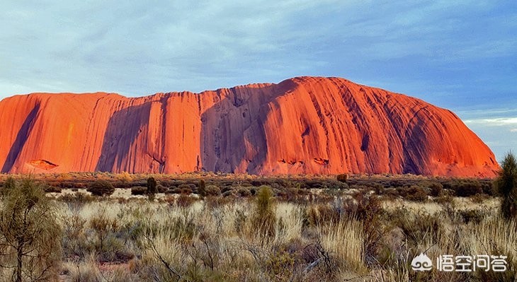 乌鲁鲁,在当地原住民方言中意为“阴暗的地方”,从周围的平原陡然上升到348米的高度,其巨石的大部分隐藏在地表之下。