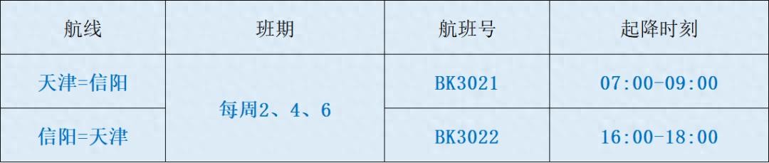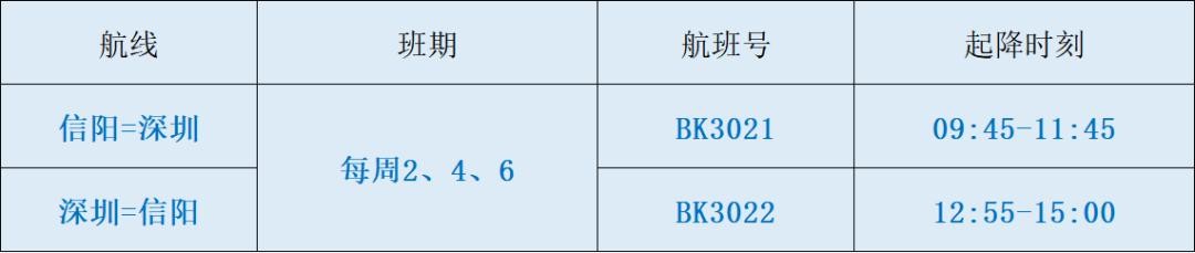 信阳明港机场新增航班时刻