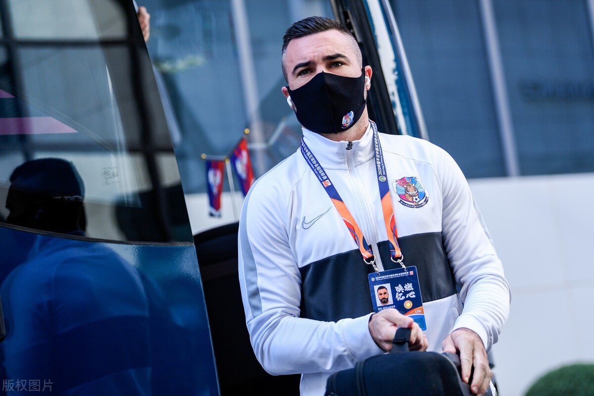 青岛黄海青港抵达赛场,亚历山德里尼、波波维奇首发