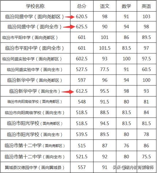 民办高中中,临汾同盛中学(全市)625.5分排名第一。