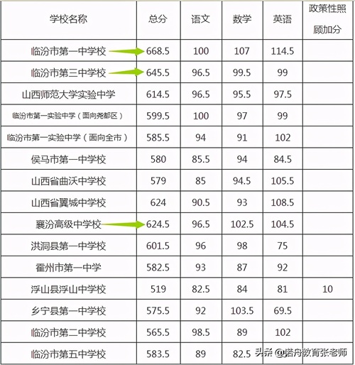 近期,临汾招生考试网公布了20201年当地统招高中录取分数线,其中临汾一中668.5分排第一,临汾三中645.5分排名第二,襄汾高中624.5分排名第三。