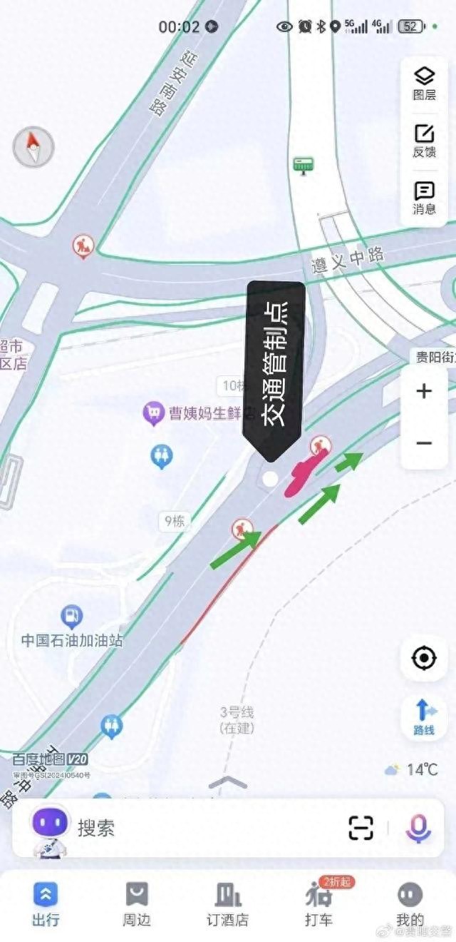 目前已在五里冲路进城向的贵阳街立交主线进行临时交通管制,所有车辆由贵阳街立交桥上通行。